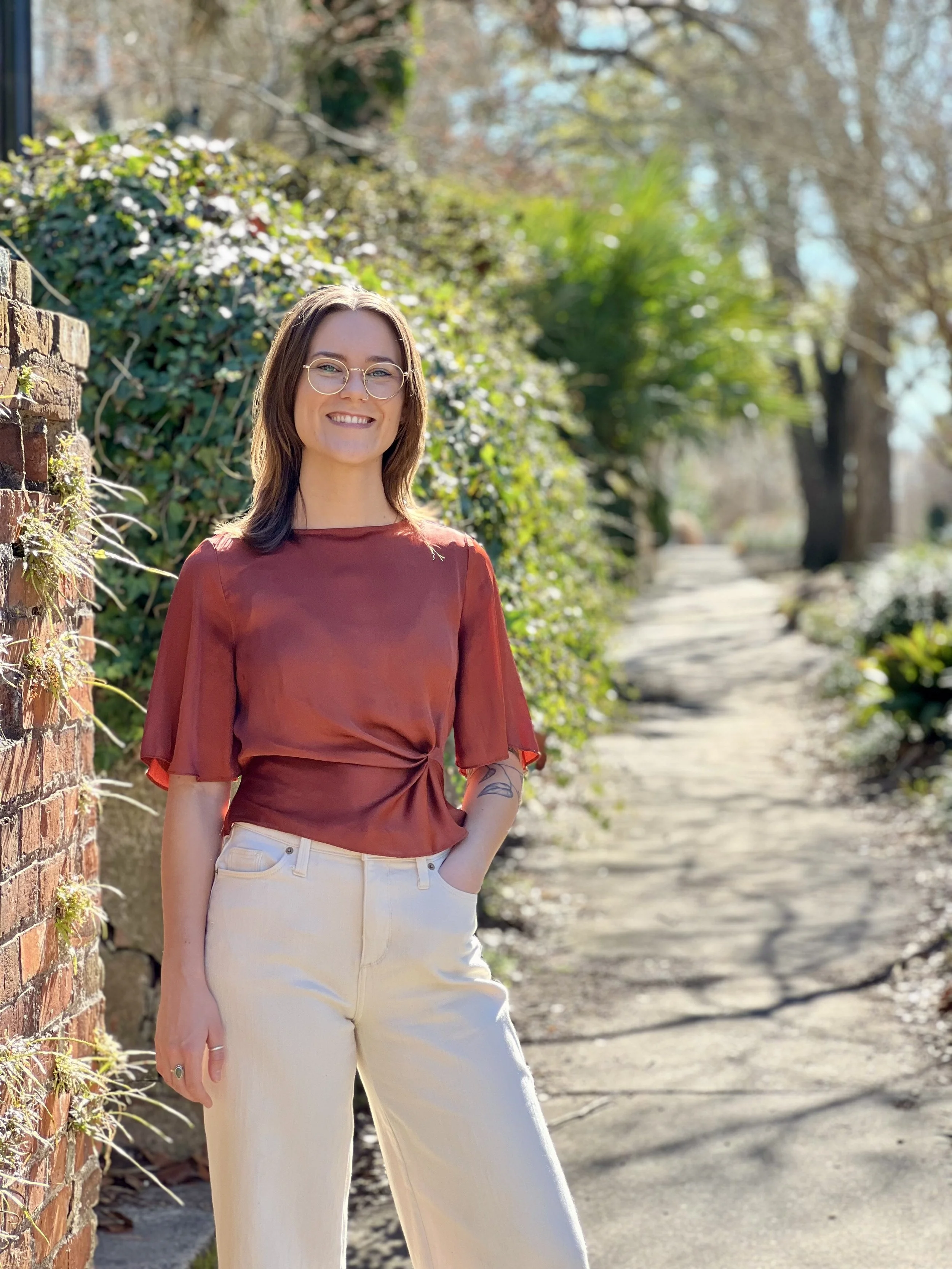 I enjoy grabbing coffee with friends, yoga, walking with my dog Buffy around Wilmington and re-watching Ted Lasso.